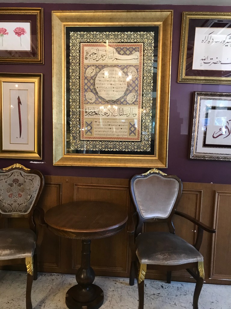 Duvarlarda asılı tabloları çoğunlukla arapça yazılarla mevcut. Cafe ortamına hoş ve naif bir ambiyans katmış.